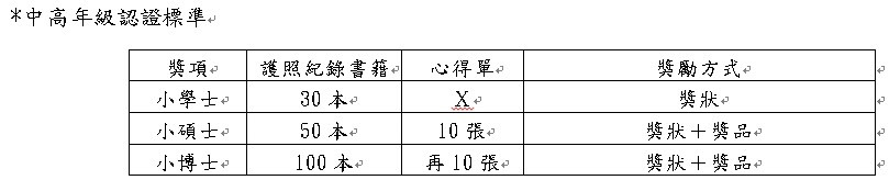 5. 中高年級同學請盡量看100頁以上的書籍,不足100頁的書籍每頁不可多於一本。